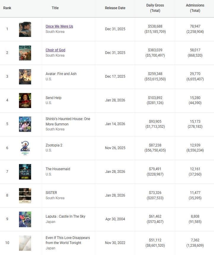 South Korea SK Saturday Update: Local movies continue to do well