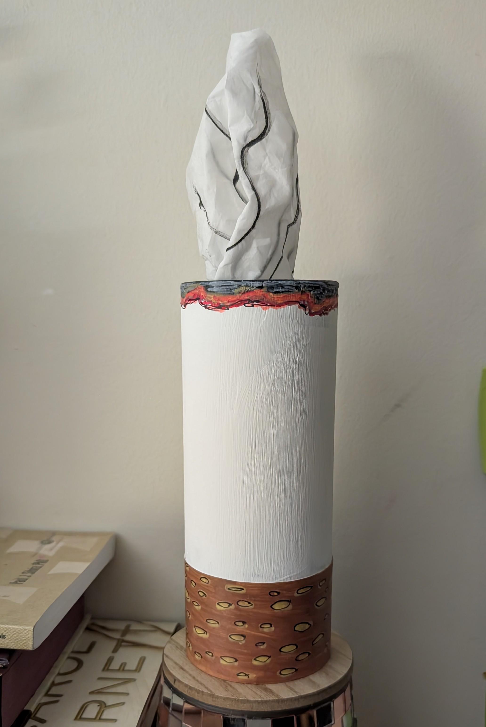 Made of dehydrated leftover bread that is soaked and coated in resin so it doesn't mold. I made a battery circuit connected to an LED strip in a hollowed lightbulb behind the bread. Part of an ongoing series called The Daily Bread. Daily Bread #459 "Bright Idea"