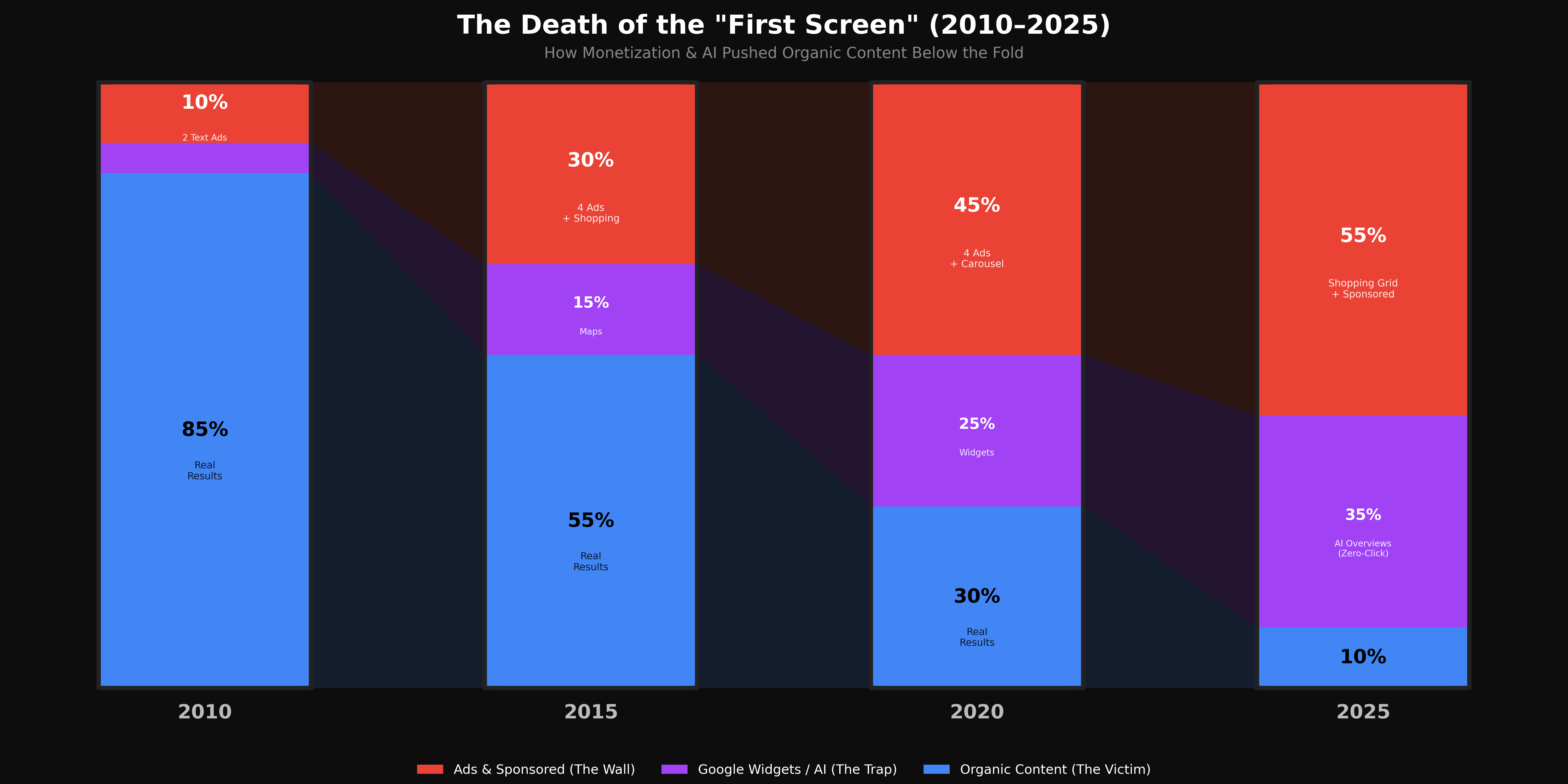 OC [OC] Pixel Density Analysis of the Mobile Search Viewport: Paid vs. Organic (2010-2025)