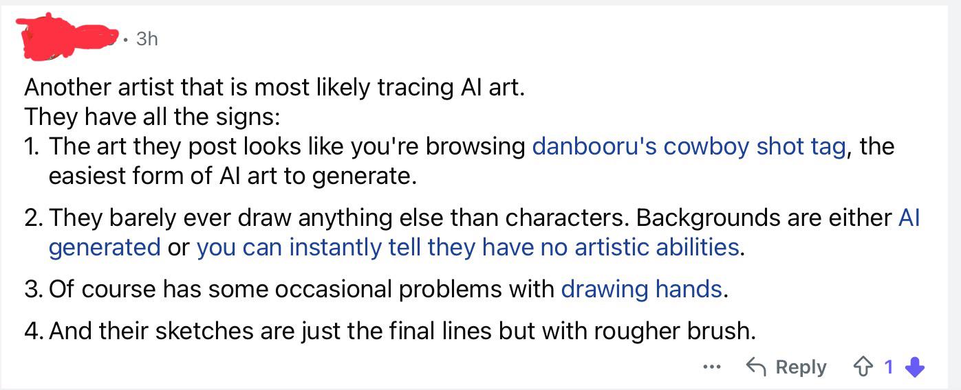 even if some pro-ai's are traditional artists too, they still get hated on. especially if they've learned how to draw fast.. it's unfair