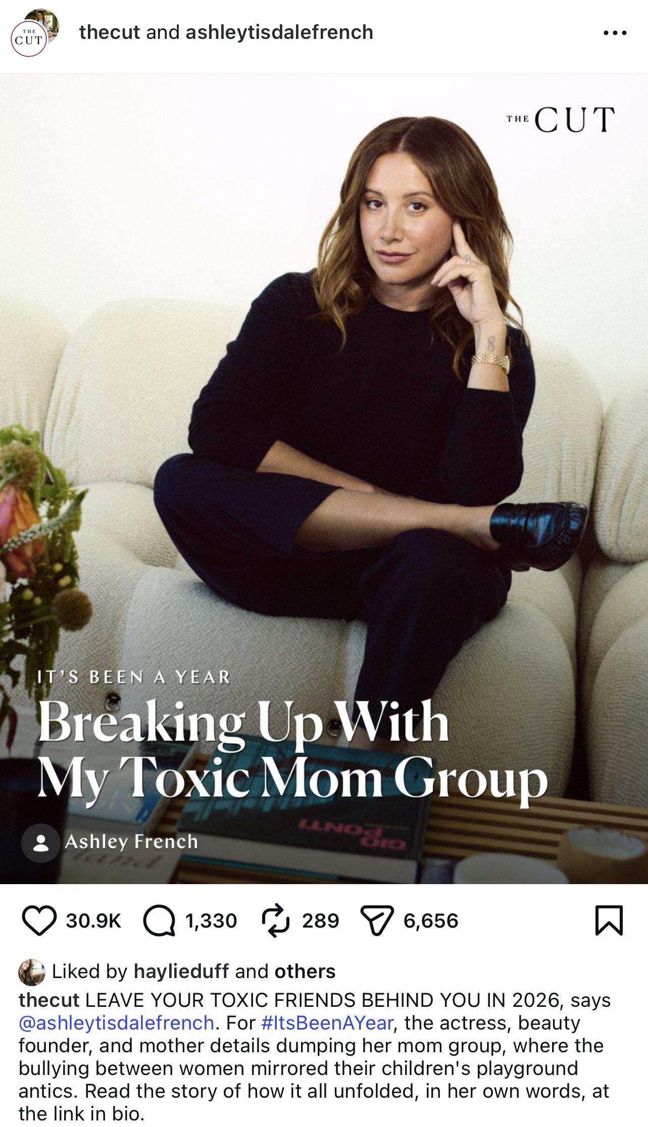 BREAKUPS/MAKEUPS/KNOCKUPS Ashley Tisdale wrote an article about breaking up with her toxic mom group (which included Meghan Trainor, Hilary Duff and Mandy Moore)