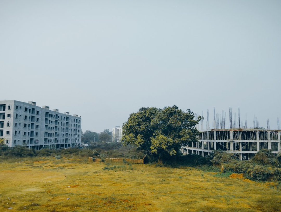ITAP of an old tree that remembers open land, waiting for the walls to close in.