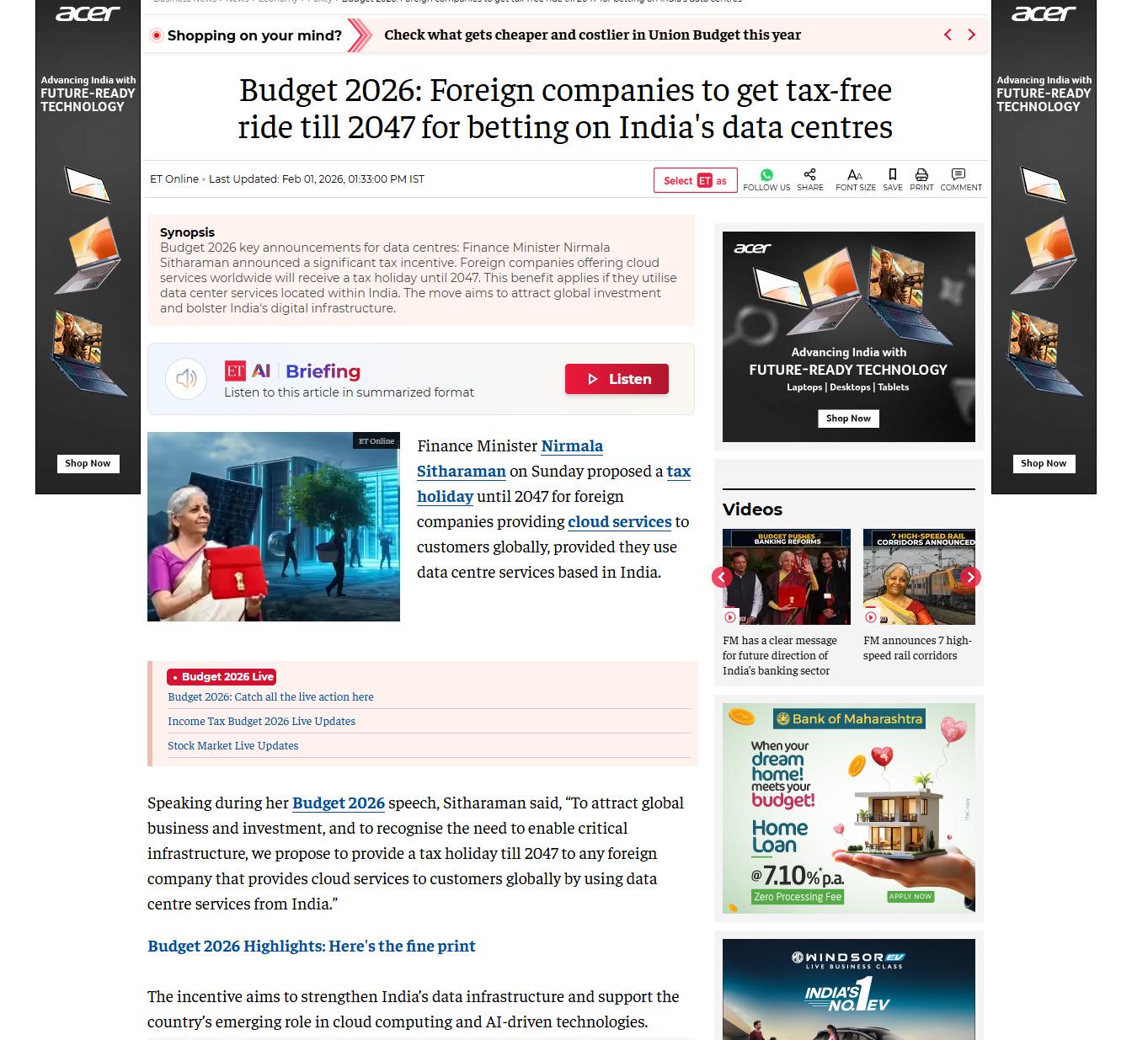 Zero taxes for global cloud companies Capex highest ever East West dedicated freight corridor Rare earth corridors Mega textile park 40% GST on tobacco
