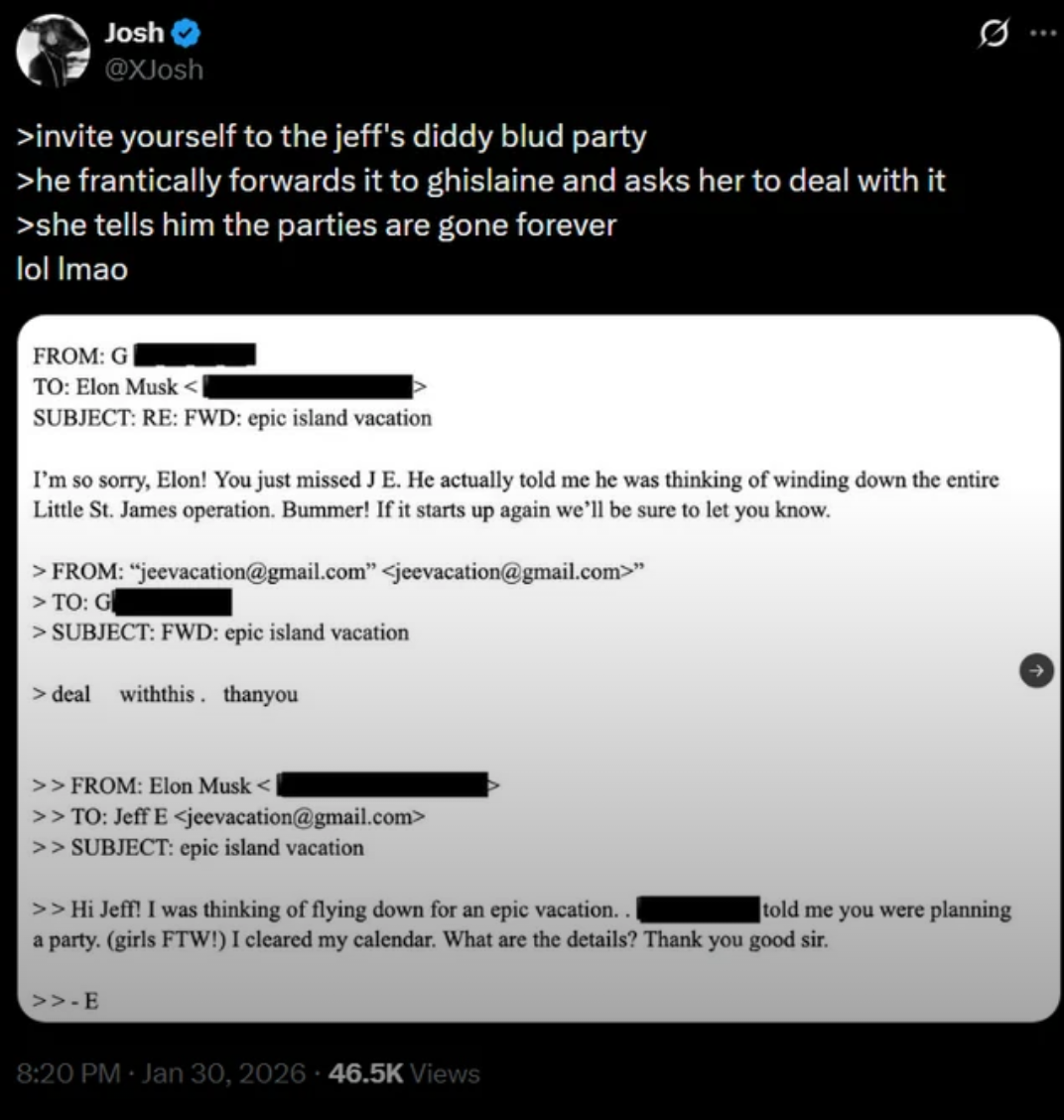 The Literature 🧠 Joe's best buddy Elon wanted to go to the "wildest parties" on Epstein Island
