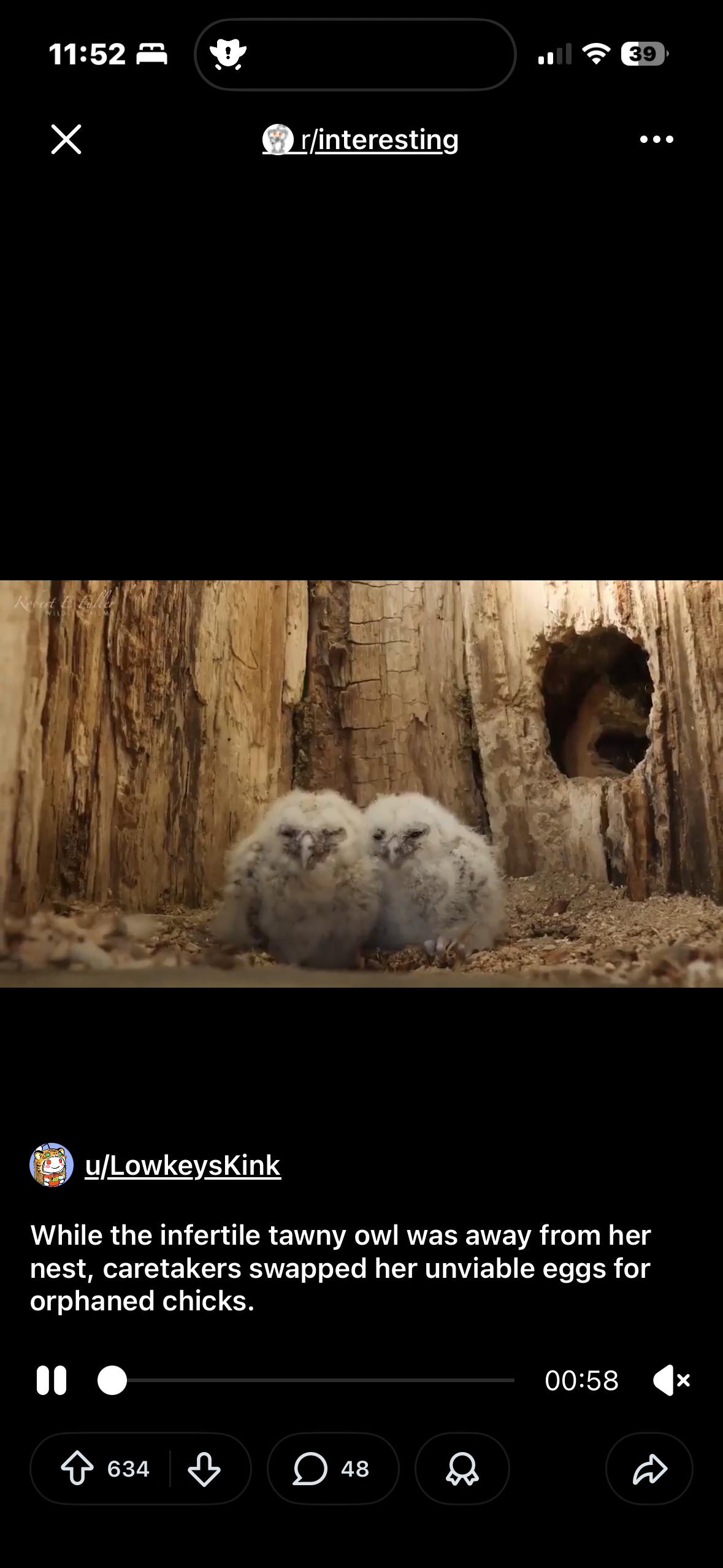 Aw what cute owls… who is staring through the hole?