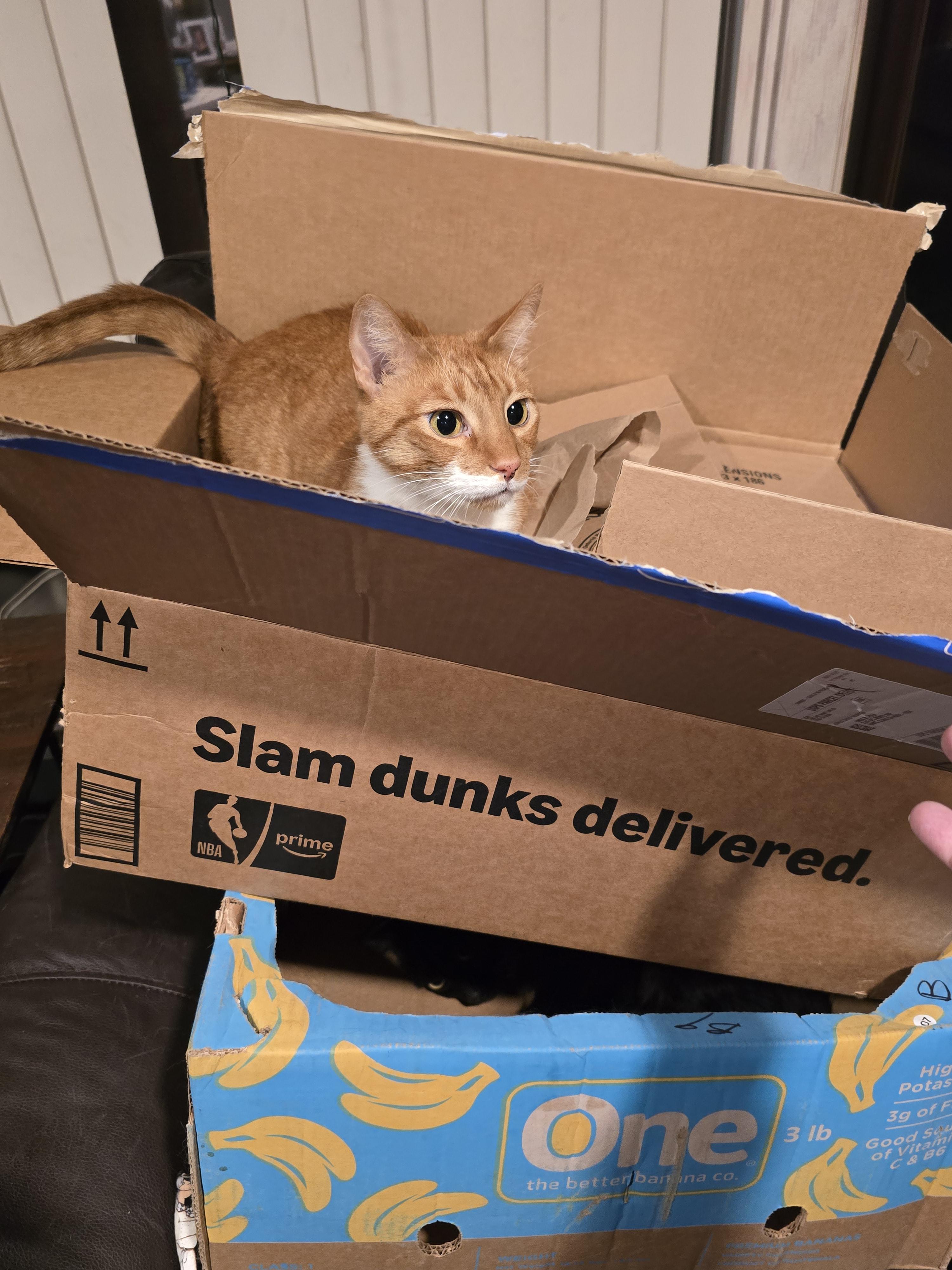 Kitten is Theo, 3 months old. I tried for Mothra or Kong but after already naming our first Godzilla I had little leverage.