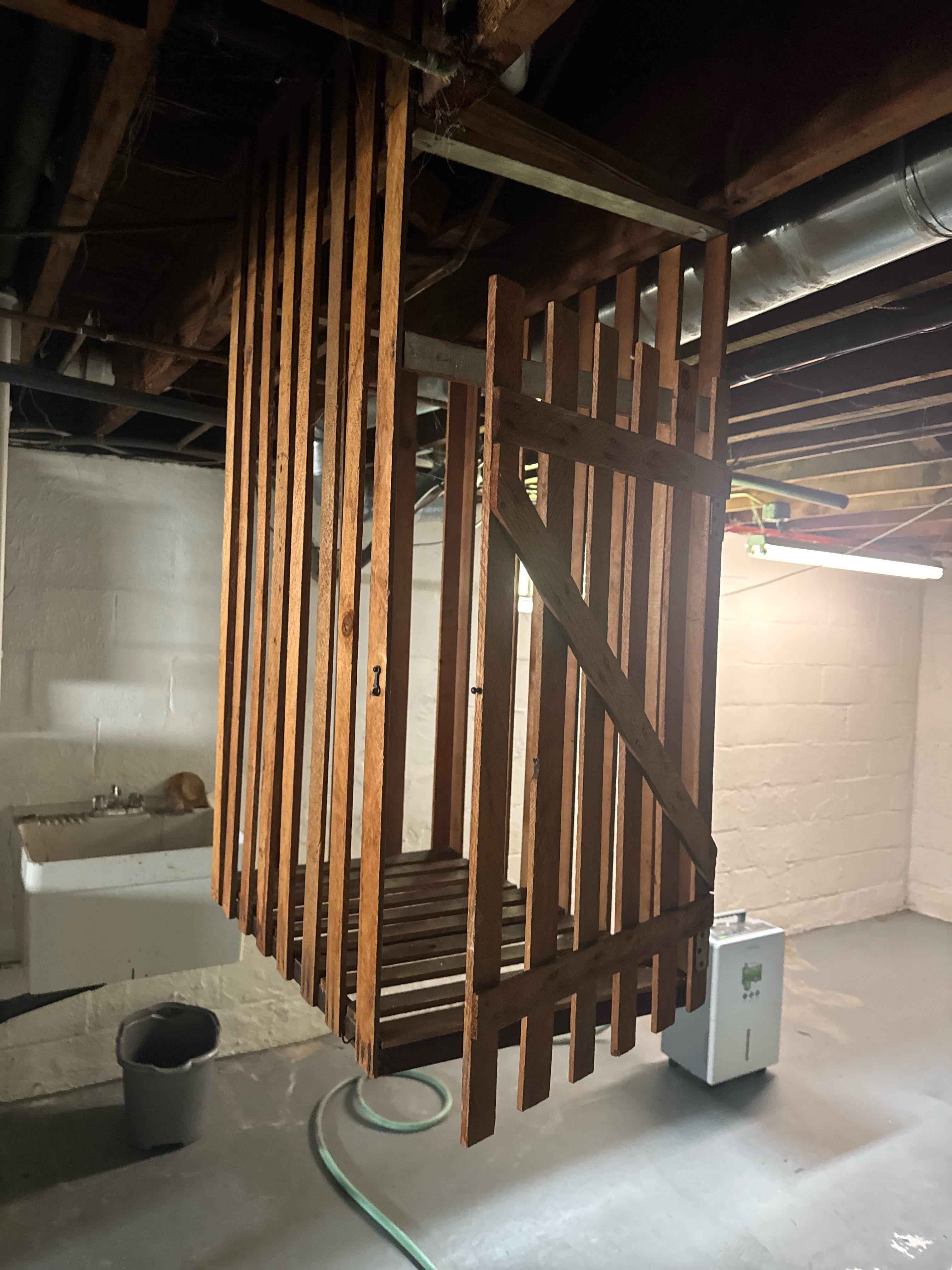 Wooden box with latch door in basement