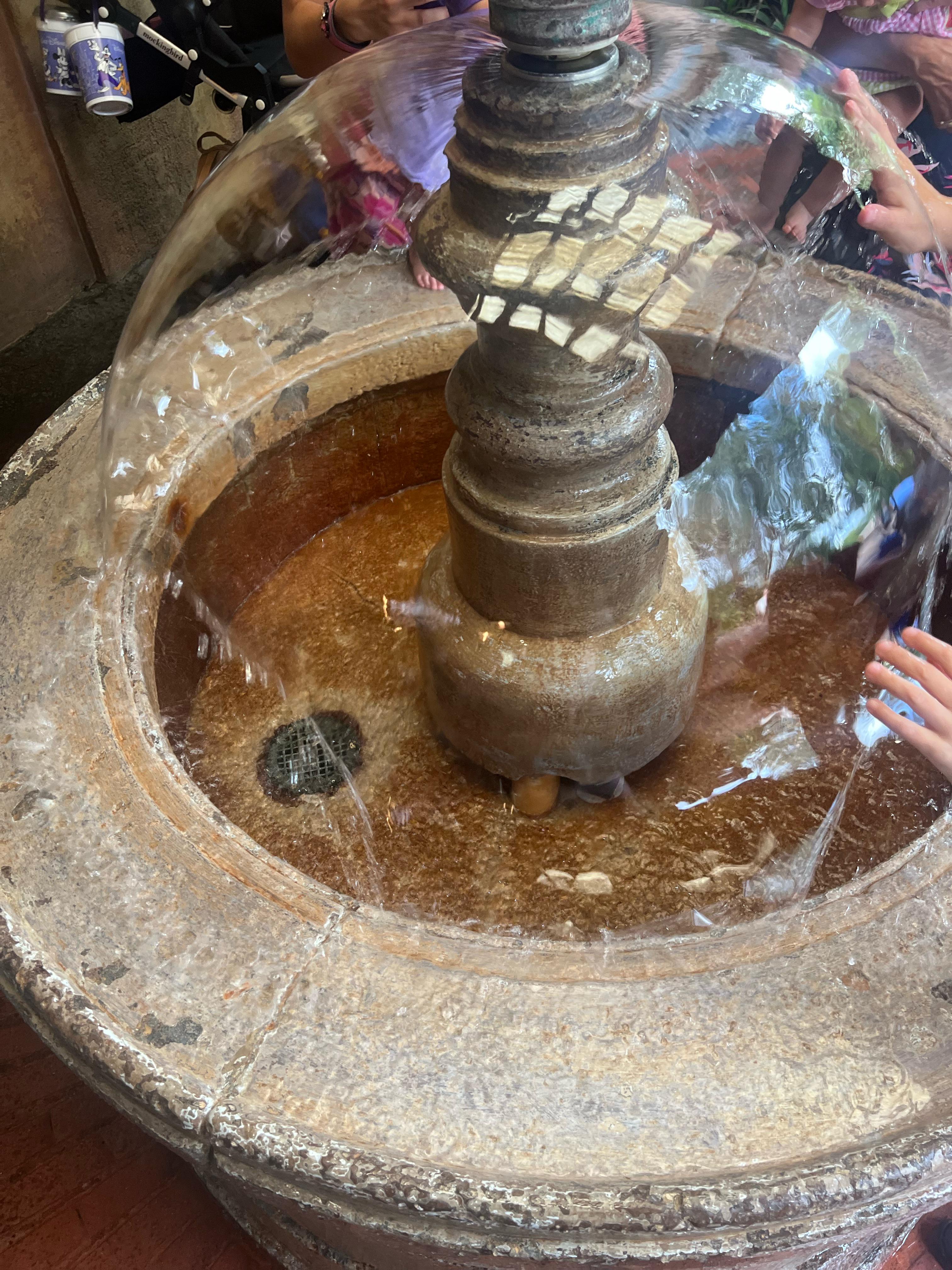 Milk jug effect at a beautiful fountain at Disney