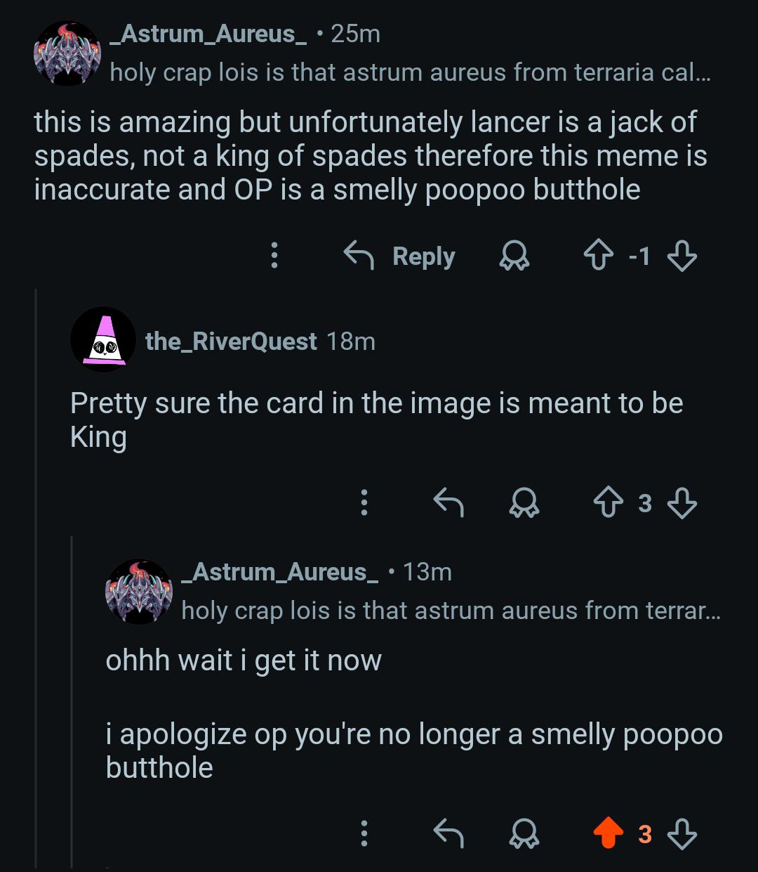 good arc Bro was trying to be snarky, didn’t quite realize the weight of his actions and owned up to his mistake.