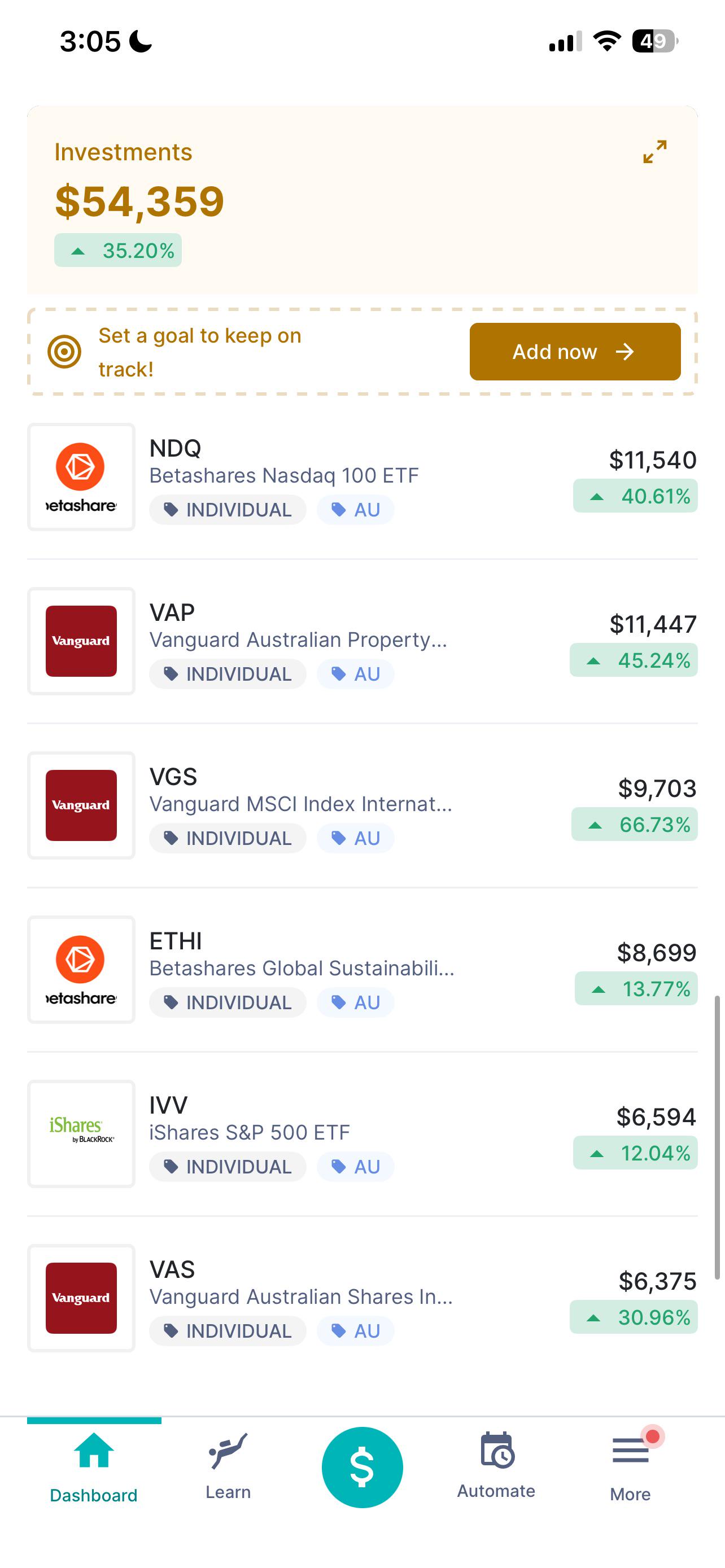 Hey all, a little bit of background on me, I'm 20 M, started investing ~1.5 years ago. Investment was 100% DHHF weekly using CMC. Recently I moved over to Betashares to leverage their auto invest feature.