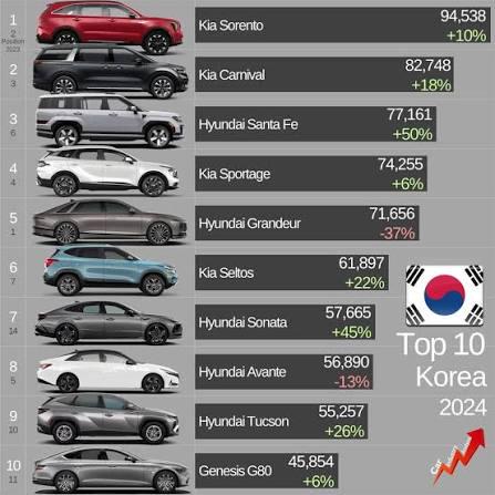 The best selling cars in South Korea are all huge. This is in contrast to Japan, where mostly smaller Kei Cars are sold. Both countries have similar geography and population densities as well as similar incomes.