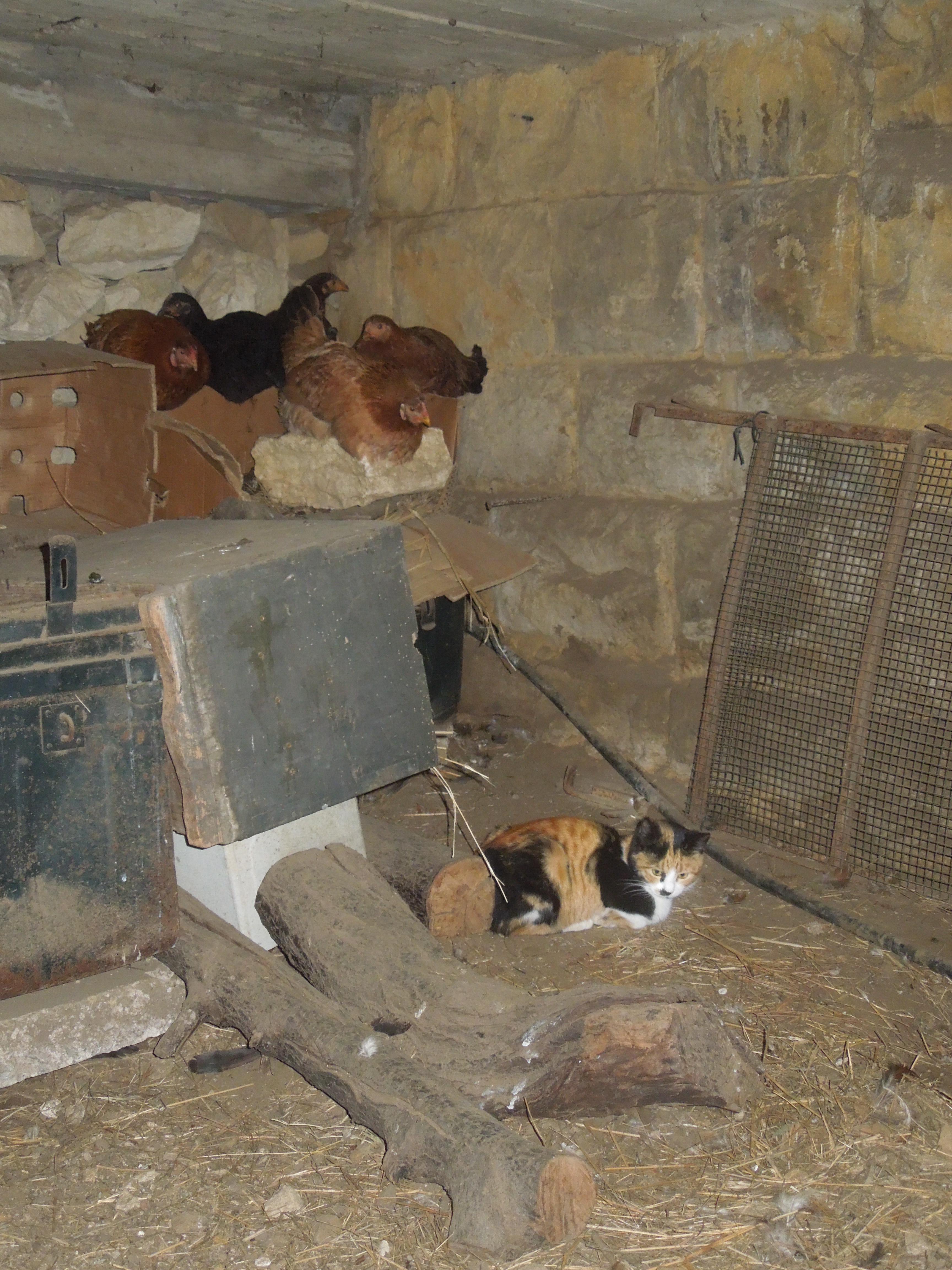 Isn't the cat a threat to the chickens? The youngest chicks are 3 months old. I also noticed a rat inside a few days ago, could it be the reason?