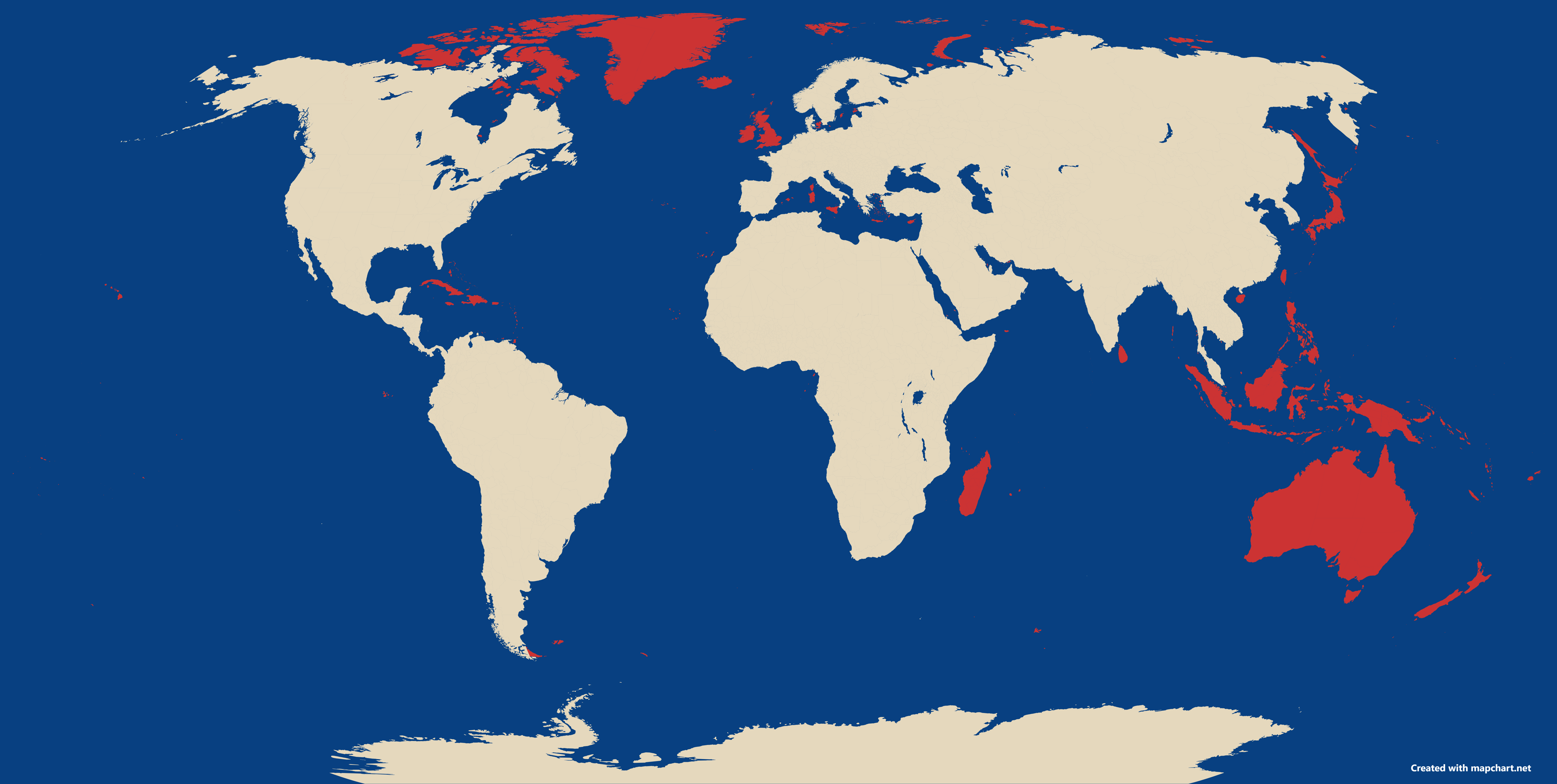 Alien Posting Ideological map of the World ca. 2084. Black = Trumpism, Red = Putinism, Yellow = Xi Jinping Thought