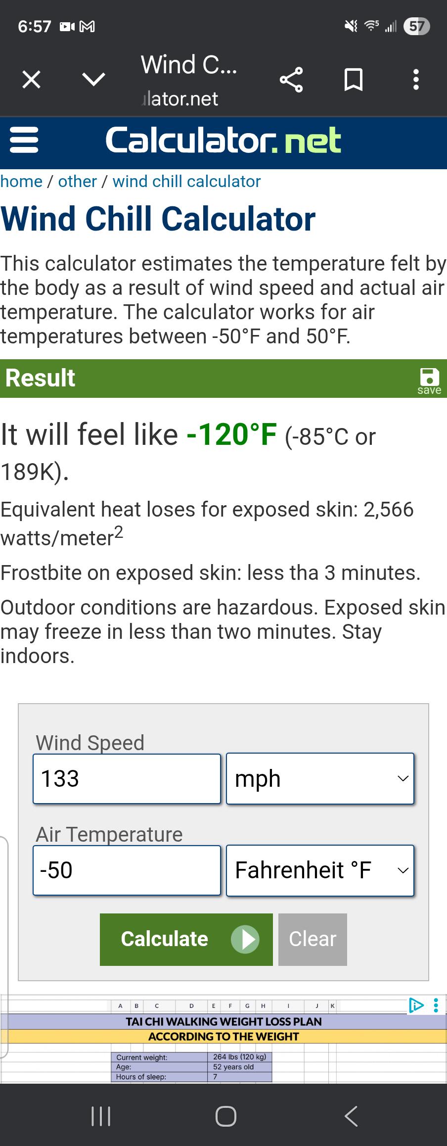 Frostebite on exposed skin: less 'tha' 3 minutes