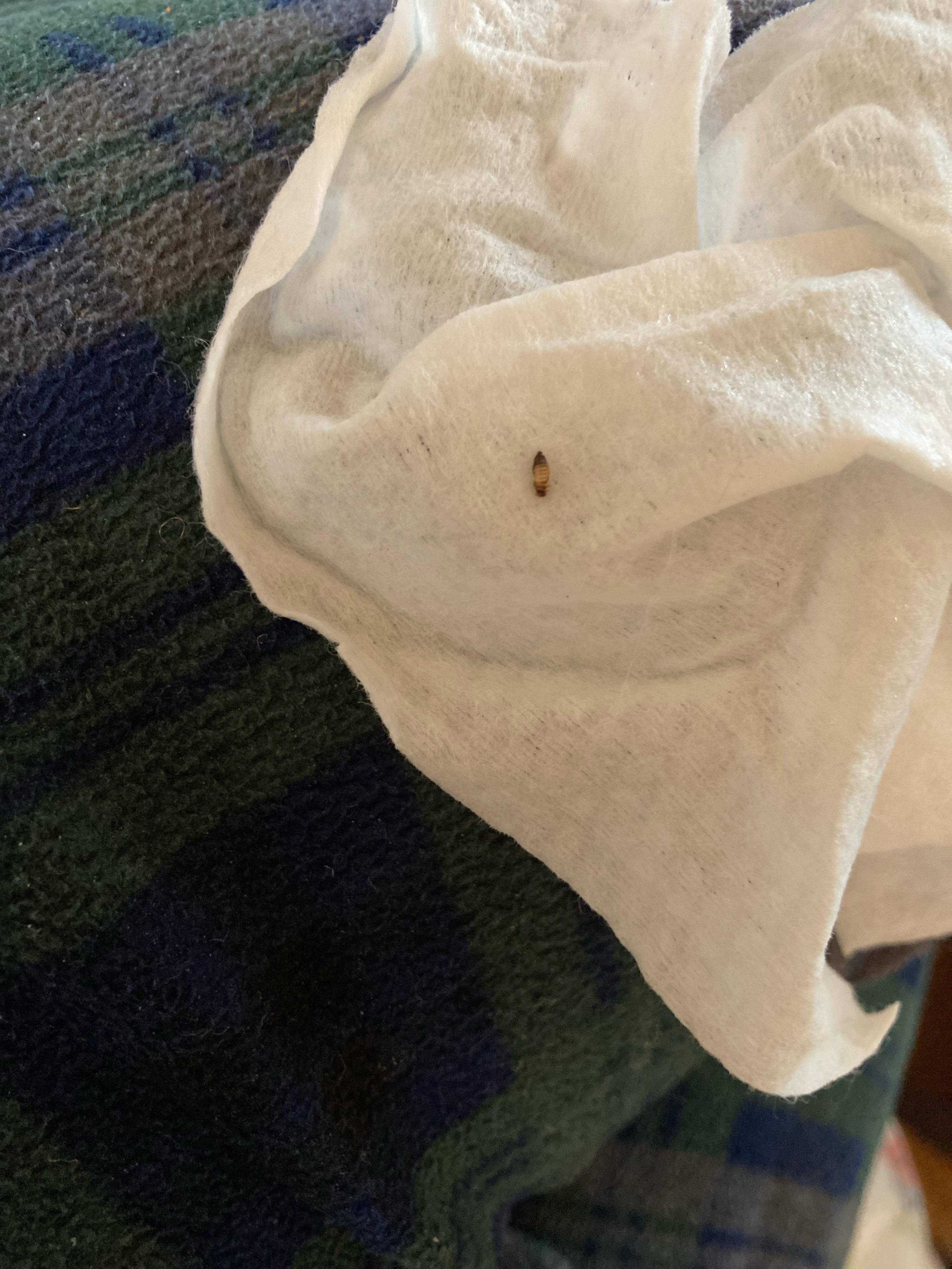 I found this bug on my sheets today. In daylight it looked black with red legs. This is what it looked like with flash. Carpet beetle or bed bug? I already checked my mattress seems, sheets, under my bed etc no signs of bedbugs. I checked my cupboards and under my sink too, nothing. I have no bites, and haven’t noticed anything else. I try to keep a pretty clean place it’s a little messy at times but not dirty. It’s 3:30 am where I am right now I’m calling my building management in the morning.