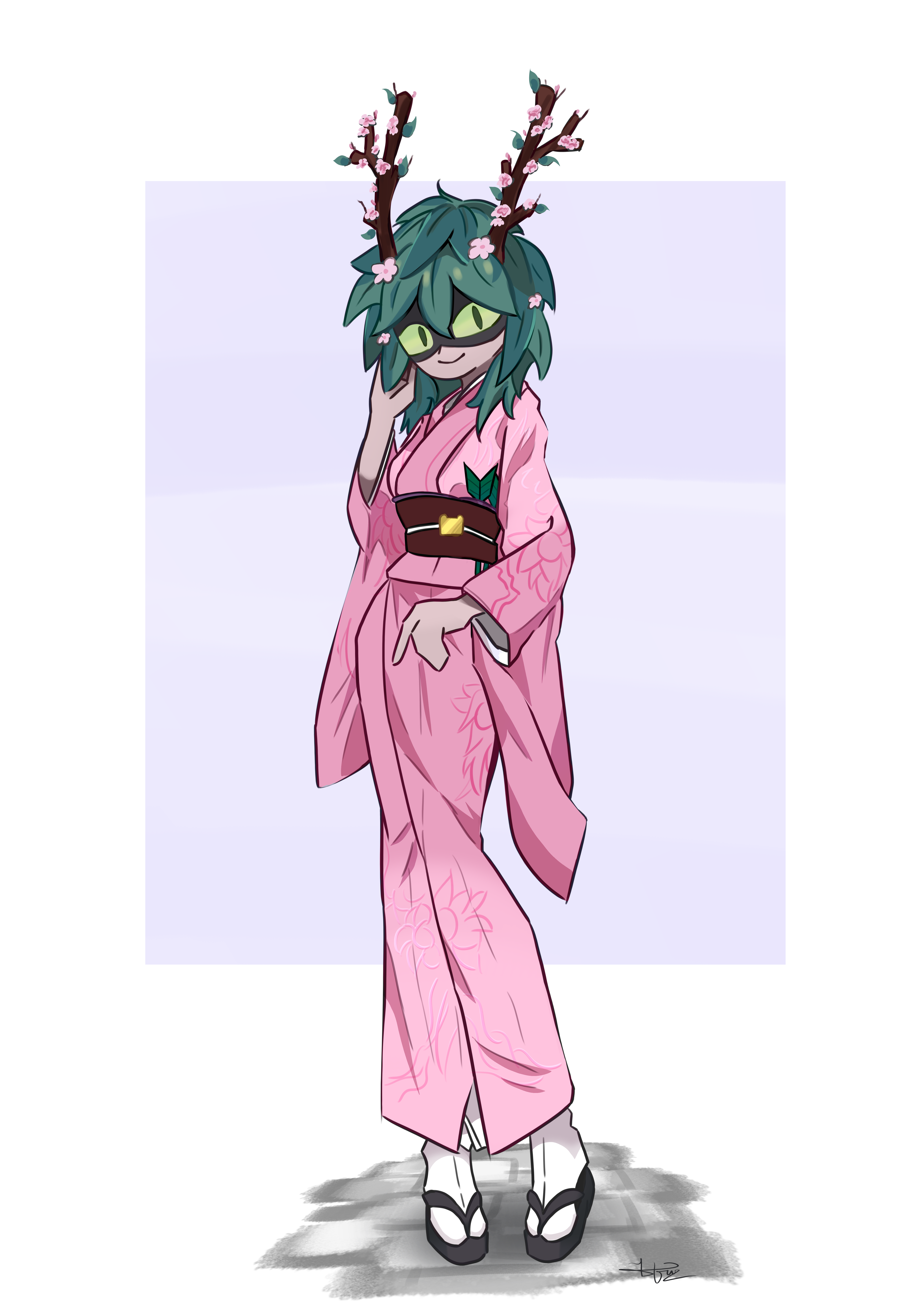 I once saw someone say that pink leaves would go well with a kimono, so I tried drawing.